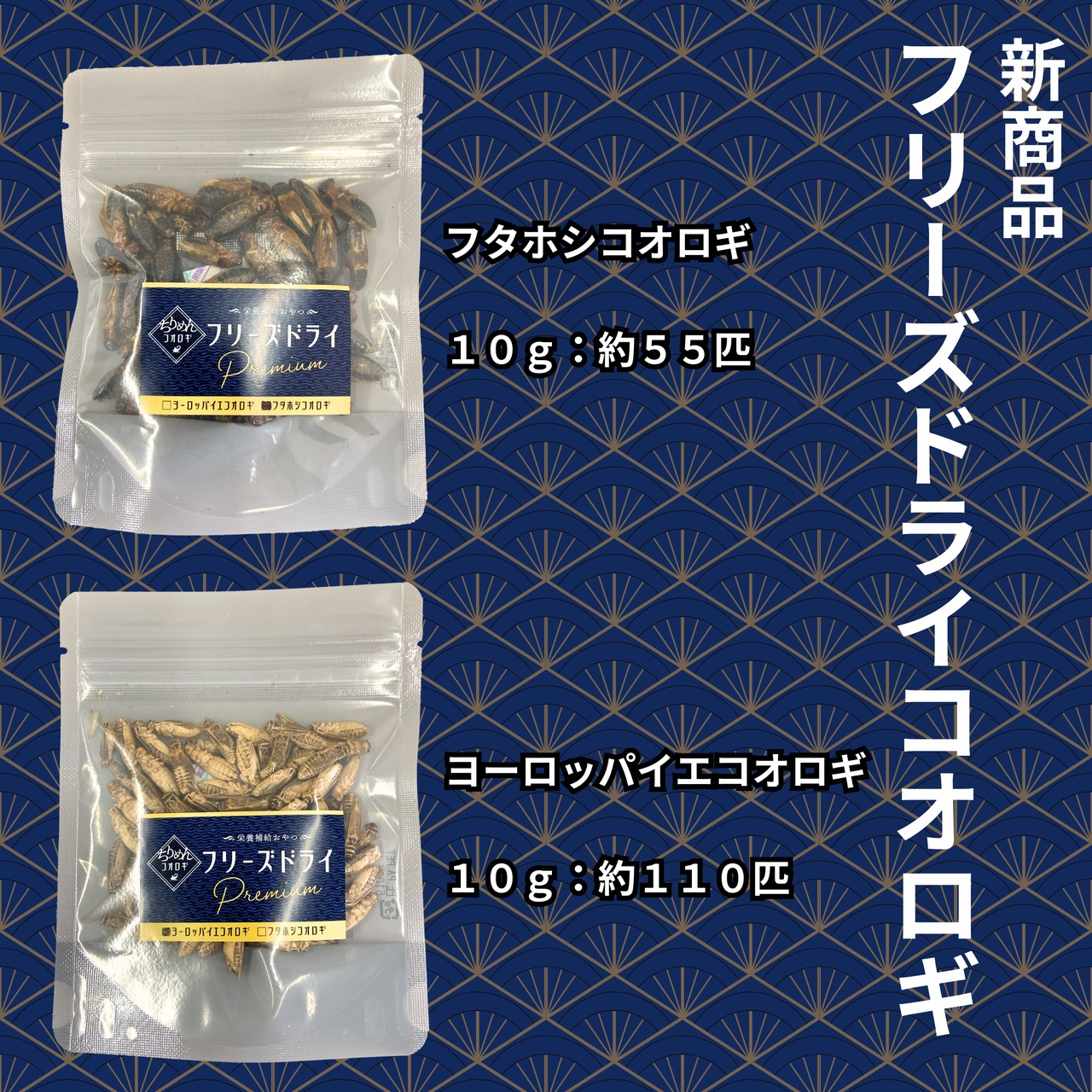 乾燥コオロギのような匂いの心配もなく、冷凍コオロギに不安な災害時にも安心です。